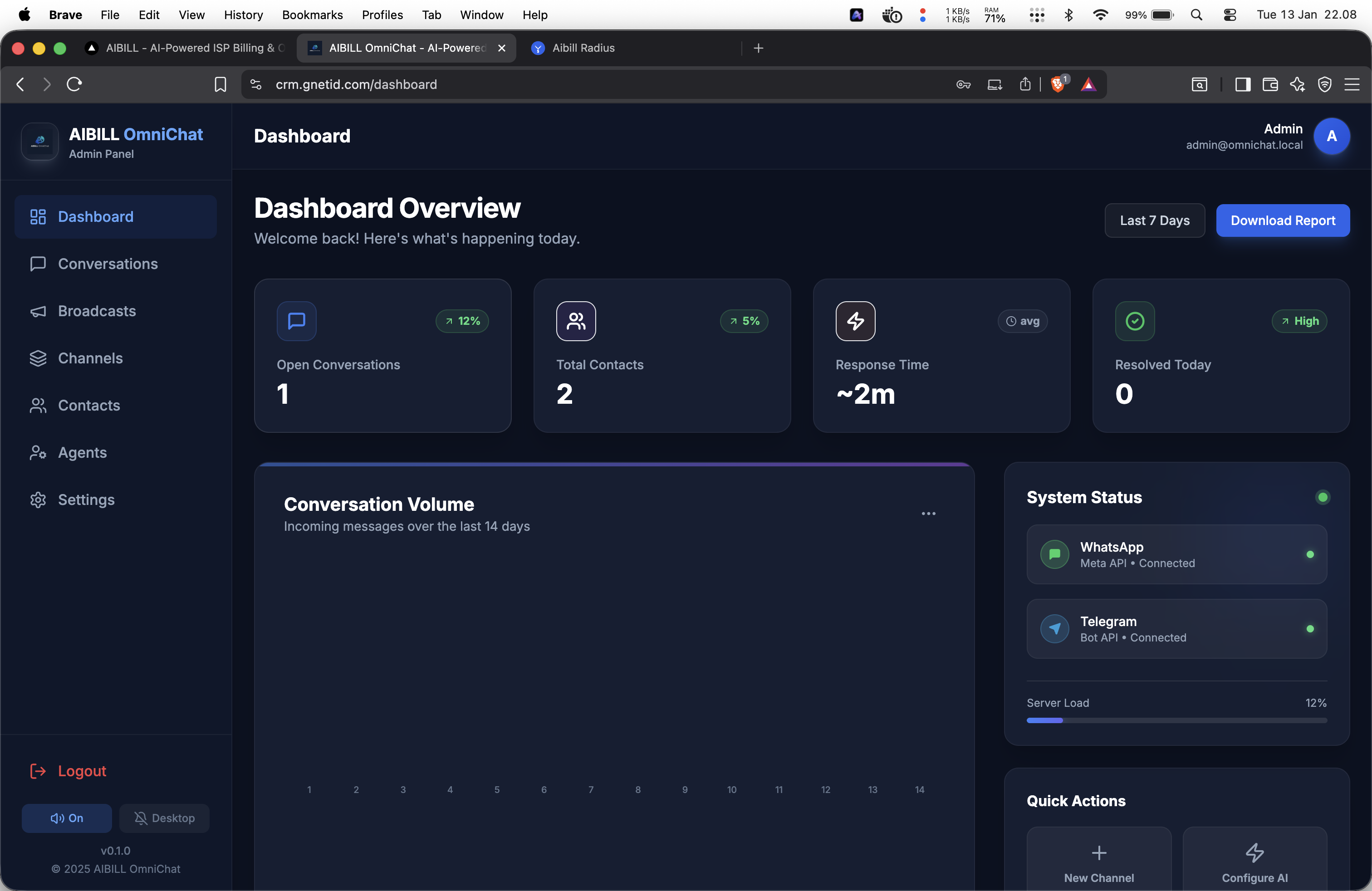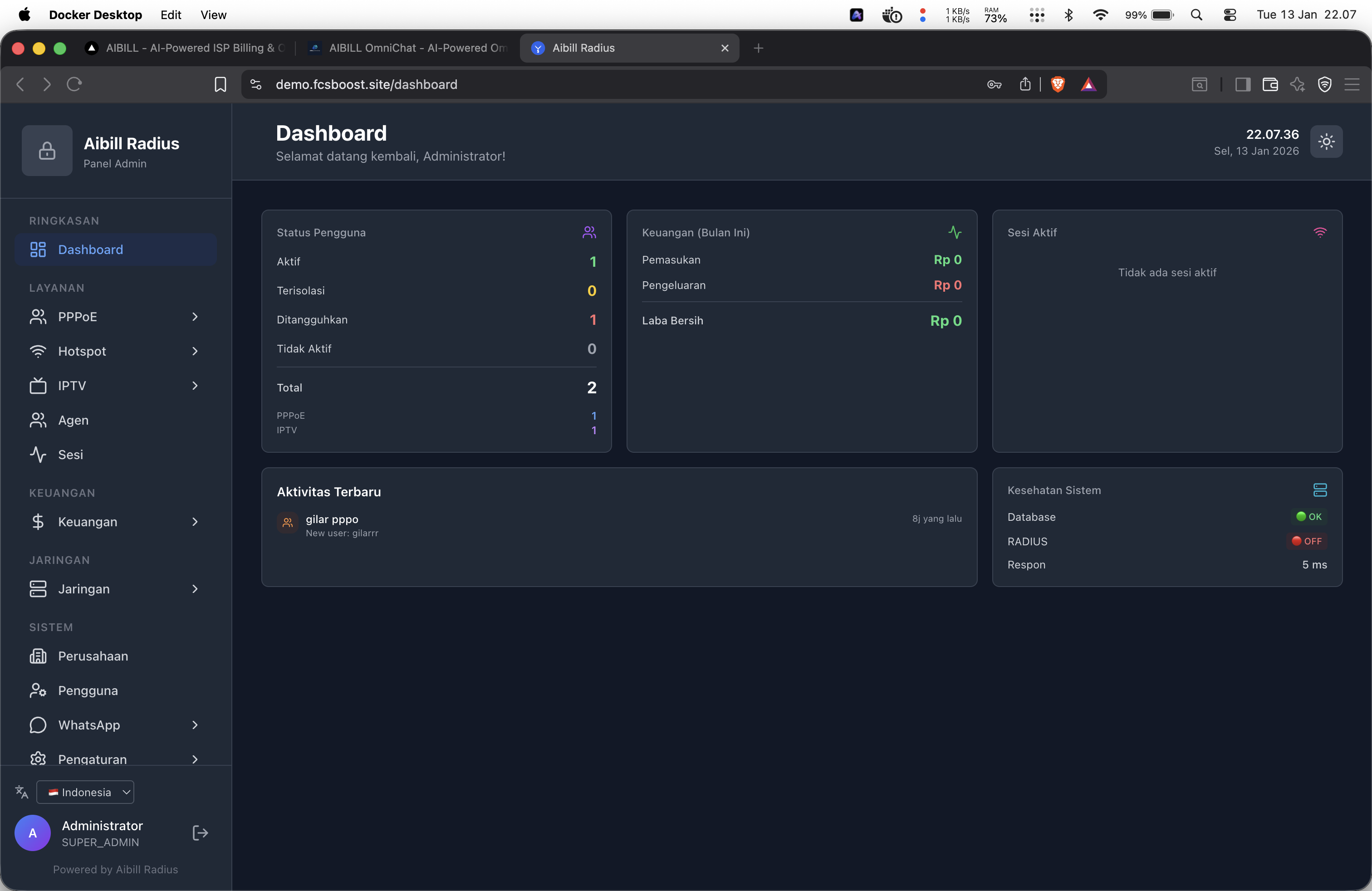 Satu platform terintegrasi untuk Radius Billing, Manajemen Bandwidth, dan CS Otomatis via WhatsApp & Telegram. Tinggalkan cara lama yang manual.
