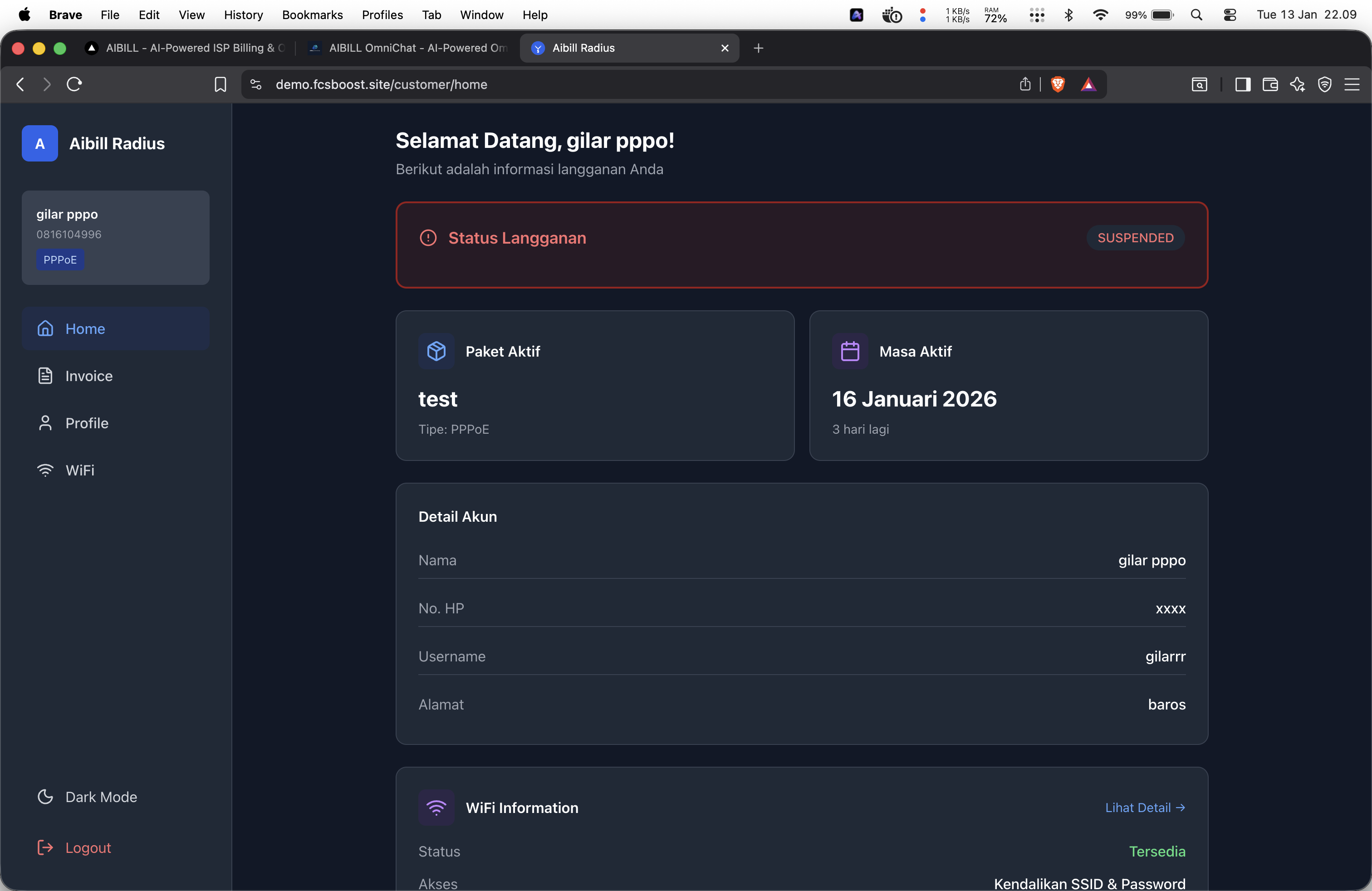 - Portal Pelanggan untuk Cek & Bayar Tagihan.